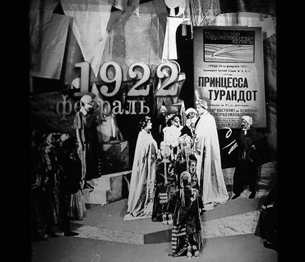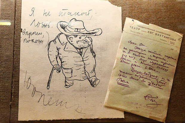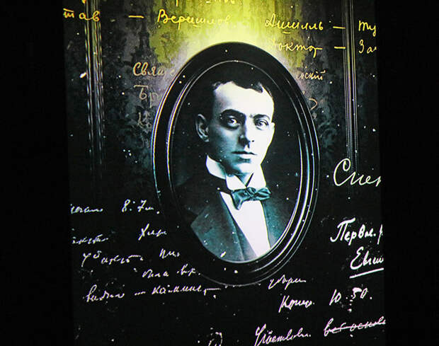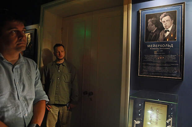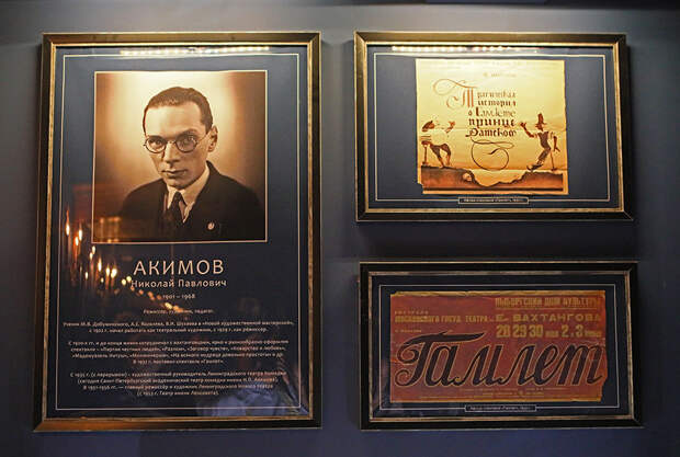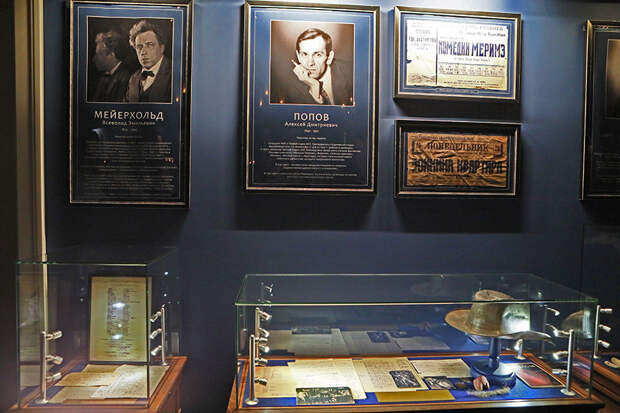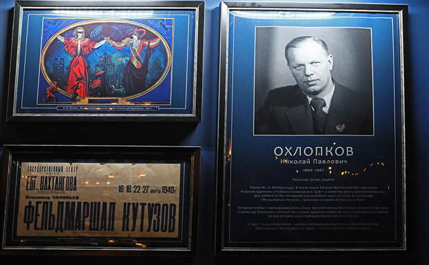 В первом зале, едва переступите через светящуюся черту, вас встретят портреты «13 режиссёров», (13 ноября 1921 года, когда состоялась премьера «Чуда Святого Антония», принято считать днём рождения театра, - Ред.), о которых расскажут Мария Аронова, Сергей Маковецкий, Игорь Карташёв и Артур Иванов. Причём, места, где бы приземлиться, как говорят устроители выставки, режиссёры выбирали сами. Мы всех их знаем: Евгений Вахтангов - отец-основатель, Всеволод Мейерхольд- всеобщий учитель, Алексей Попов - с его «Виринеей», Николай Акимов - с легендарным «Гамлетом», Николай Охлопков - с «Фельдмаршалом Кутузовым», Рубен Симонов, Александра Ремизова, Пётр Фоменко, Юрий Любимов - с «Бесами», Римас Туминас, почти 15 лет руководивший театром...