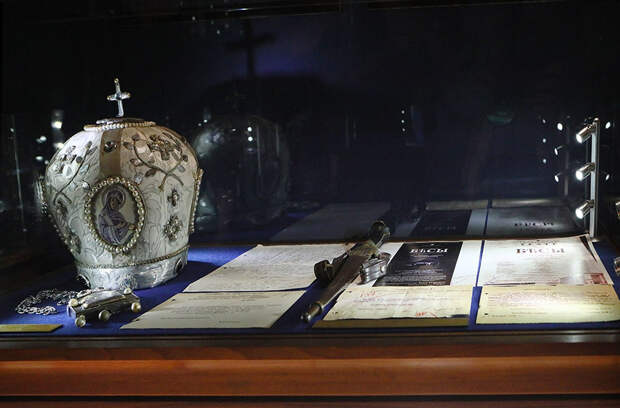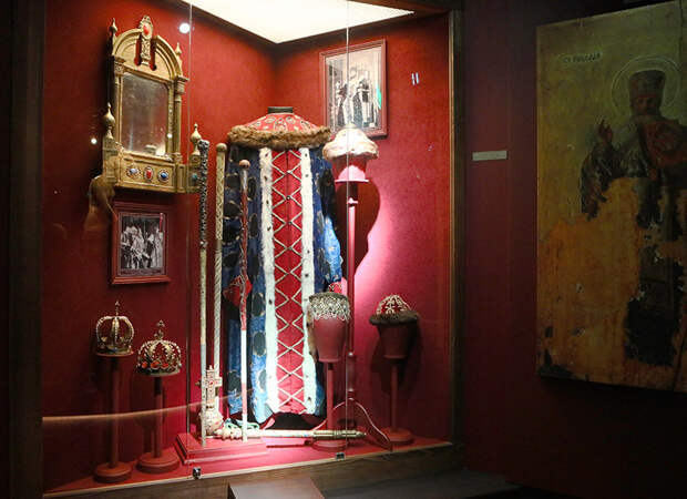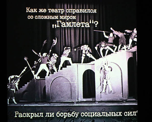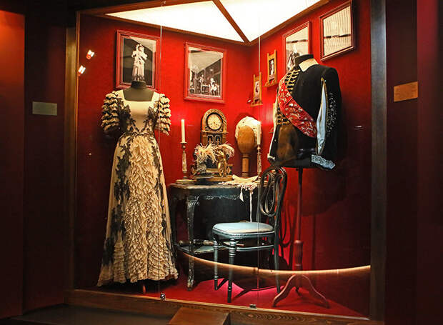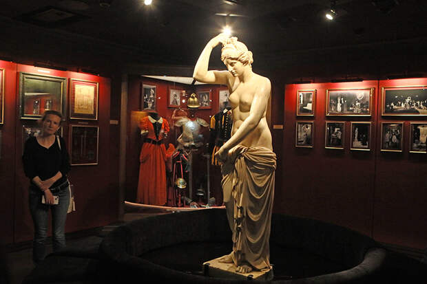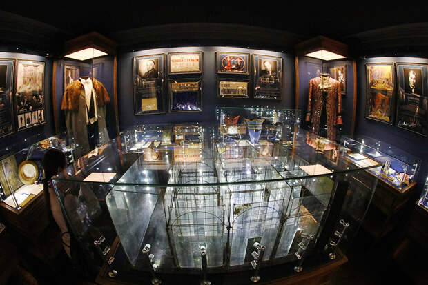 Наконец белый экран исчезает, и мы видим витрины с раритетами, слышим, что говорят «ожившие» экспонаты. Самая энергичная и говорливая мраморная девушка (Марина Есипенко), она рассказывает о внутренней жизни театра и признаётся, что самое страшное для них, молчаливых помощников режиссёров и артистов, провожать их. «Они уходят, а мы остаёмся и храним воспоминания о них. Помним, кем они были, как жили, от чего страдали. Храните же и вы нашу тайну, не выдавайте!» – завещает статуя уже нам, экскурсантам. Мы выслушиваем монолог Шапки Мономаха из спектакля «Великий государь», ей тоже есть что сказать, речь Доспехов из «Гамлета» (в стихах!), откровения Веера Цецилии Мансуровой из «Много шума из ничего», Дирижёрской палочки графа Шереметева и даже ссору голосов из Жалобной книги... Осколку фугаски тоже дают слово, но об этом не будем.
