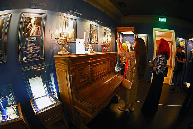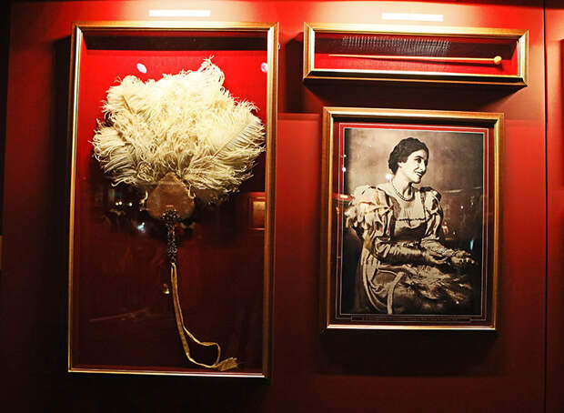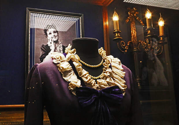 «Хрустальный» макет Олега Шейнциса к «Анне Карениной» Романа Виктюка демонстрируется в центре зала, а под каждым портретом, кроме витрин с раритетами, в выдвижных ящичках найдём подлинные документы.
