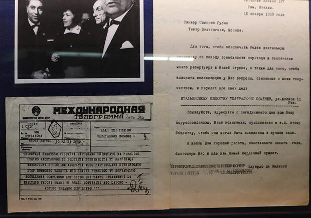 В создании Выставки принимала участие большая часть труппы - рассказчики, исполнители ролей, причём, не только режиссёров, актёров, писателей и, скажем, Василия Берга, владельца особняка, в котором расположилась Студия Е.Б. Вахтангова, но и экспонатов. Например, слышали ли вы когда-нибудь, как вещает обнажённая мраморная барышня, Шапка Мономаха из спектакля «Великий государь» или осколок фугасной бомбы, разрушившей Театр Вахтангова в 1941 году?.. Артисты поведают... Автор идеи – директор театра Кирилл Крок, режиссёр – Ася Князева, сценарист – Денис Сутыка, художник Максим Обрезков.