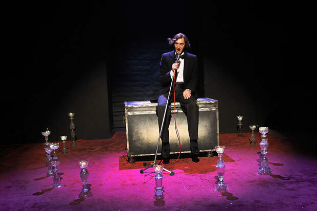 В этой круговерти, конечно, появится Сказочник (Евгений Ратьков). Очень похожий на Андерсена. «Если в «Мужчинах Марины», - говорит Аронин, - демоном был Пушкин, - здесь это роль Андерсена». Это он в одной из сцен протянет Фредерику розетку с проводом и скажет, что ему «надо найти свой источник питания, откуда черпать энергию». А также научит импровизировать у микрофона, что должны уметь делать все настоящие поэты. А однажды в купе вагона, где они волею судьбы окажутся с Фредериком, покажет сногсшибательные фокусы с клеткой.