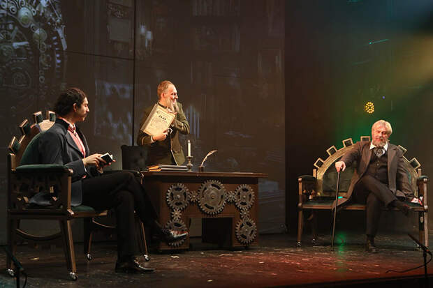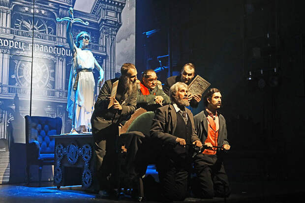 Но главная оригинальность замысла постановщика в том, что в его театральной версии Сухово-Кобылина судят герои его пьес – фарсов: манипулятор-взяточник генерал Варравин (Денис Юченков), мелкий подлец Тарелкин (Богдан Ханин), на наших глазах глотающий купюры, и злобный проходимец, следователь Расплюев (Станислав Федорчук). «Эта троица и обвиняет своего автора, борется с ним, а автор, ища правду, защищается что есть сил. Жизнь его крайне зигзагообразна: познал и триумф, и забвение. Это очень яркий характер!» – резюмирует Розовский. И не зря говорят, что нет худа без добра, именно в тюрьме Сухово-Кобылин становится писателем. Его первая пьеса «Свадьба Кречинского» не сходит с подмостков и в наши дни. Современники признали гоголевский размах его письма, в спектакле от их имени выступает великий Щепкин (Денис Юченков), корифей Малого театра.