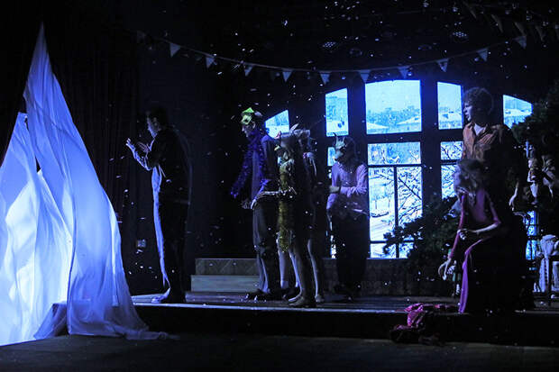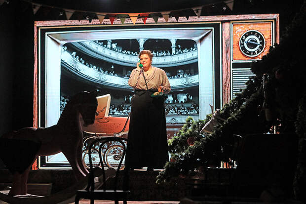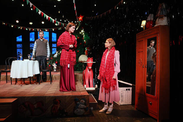 ...Начинается этот атмосферный спектакль в стиле ретро, когда в Зимнем саду под музыку обволакивающего вас советского хита «Снег кружится, летает, летает...» \ещё рассаживаются зрители. А потом мы оказываемся в том самом времени в декорациях Ольги Шагалиной - со старыми шкафами, громоздкими телевизорами, в юбках с клиньями и джинсах, сшитых из плащ-палаток, с мохеровыми шарфами в качестве подарков (художник по костюмам Дарья Горшкова, по свету Павел Бабин)), а главное - с персонажами, искренними, живыми, в чём-то наивными, тонко и остроумно описанными Токаревой. Помимо основного действия, видим несколько вечеринок - узнаваемая примета времени.