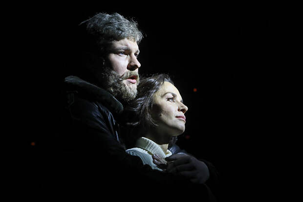 Спектакль идёт в сценографии и костюмах Максима Обрезкова: сценическое пространство представляет собой то скромную комнату на Арбате, где живут молодожёны, то съёмное жильё Тани, куда она уходит от Германа, то зимовье в Сибири. Изобретательно, с удачным использованием видео, сделаны сцены передвижения доктора Тани по эффектным сугробам сквозь свистящую пургу... Но кульминацией станет то, что больным ребёнком окажется сын Германа и Марии Шамановой Юрка.